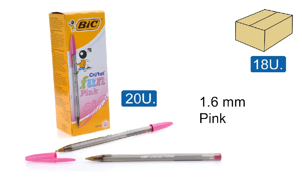 CANETA BIC CRYSTAL 1.6 FUN 20 UNID. ROSA