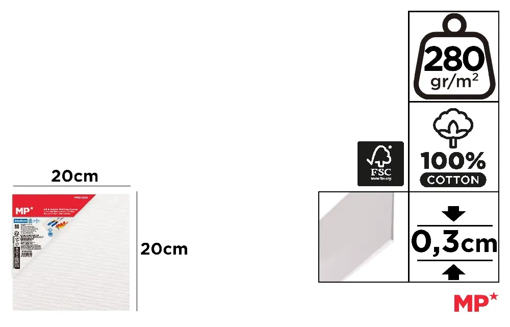 PLACA DE TELA 20 x 20 x 0,3 cm 280 g/m²
